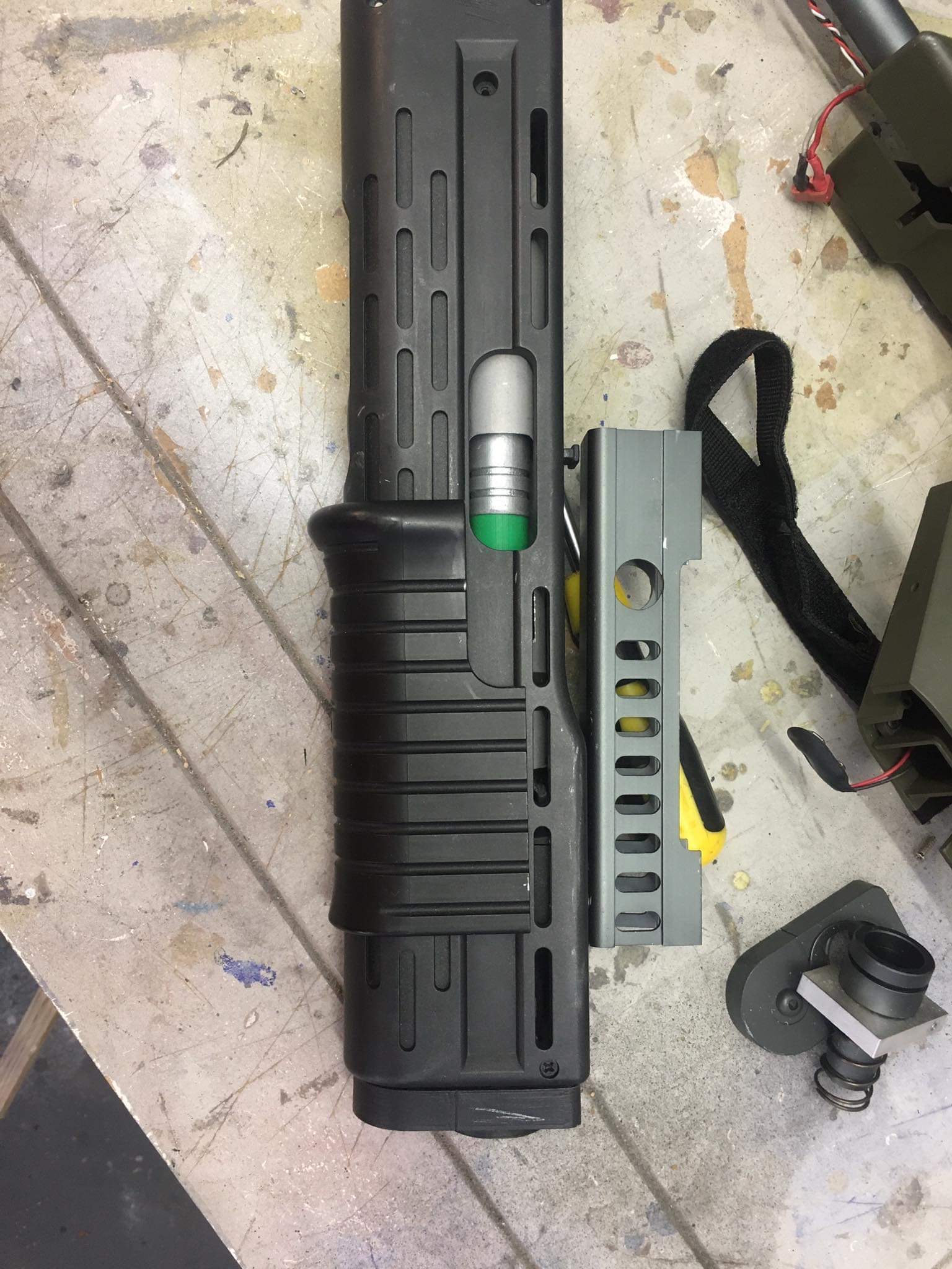 I’ve been thinking about a way to have a ‘proper’ functioning grenade launcher in my Pulse Rifle for a while. Considering all the various options available which others have explored always had compromises.