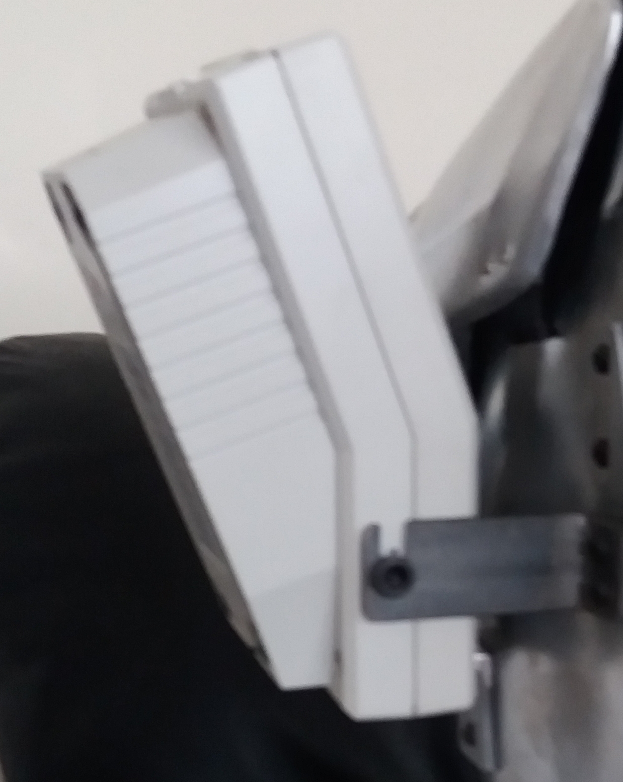 The first part i made was the bracket that attaches to the armour which i made at work out of 3mm steel. I drilled an countersunk two bolt holes and attached the bracket to the alarm box. I also added an allen key bolt for the bracket on the side.