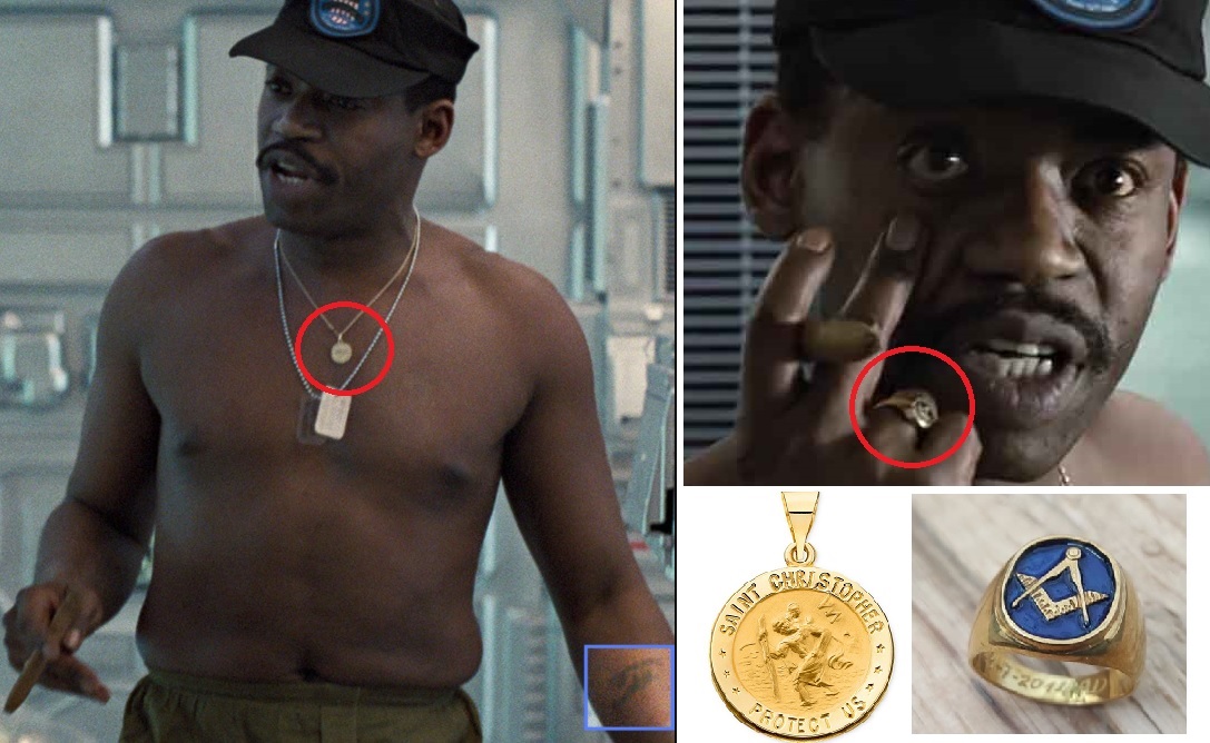-Tattoo of some type on left forearm (indecipherable, potentially real and not costume decision)