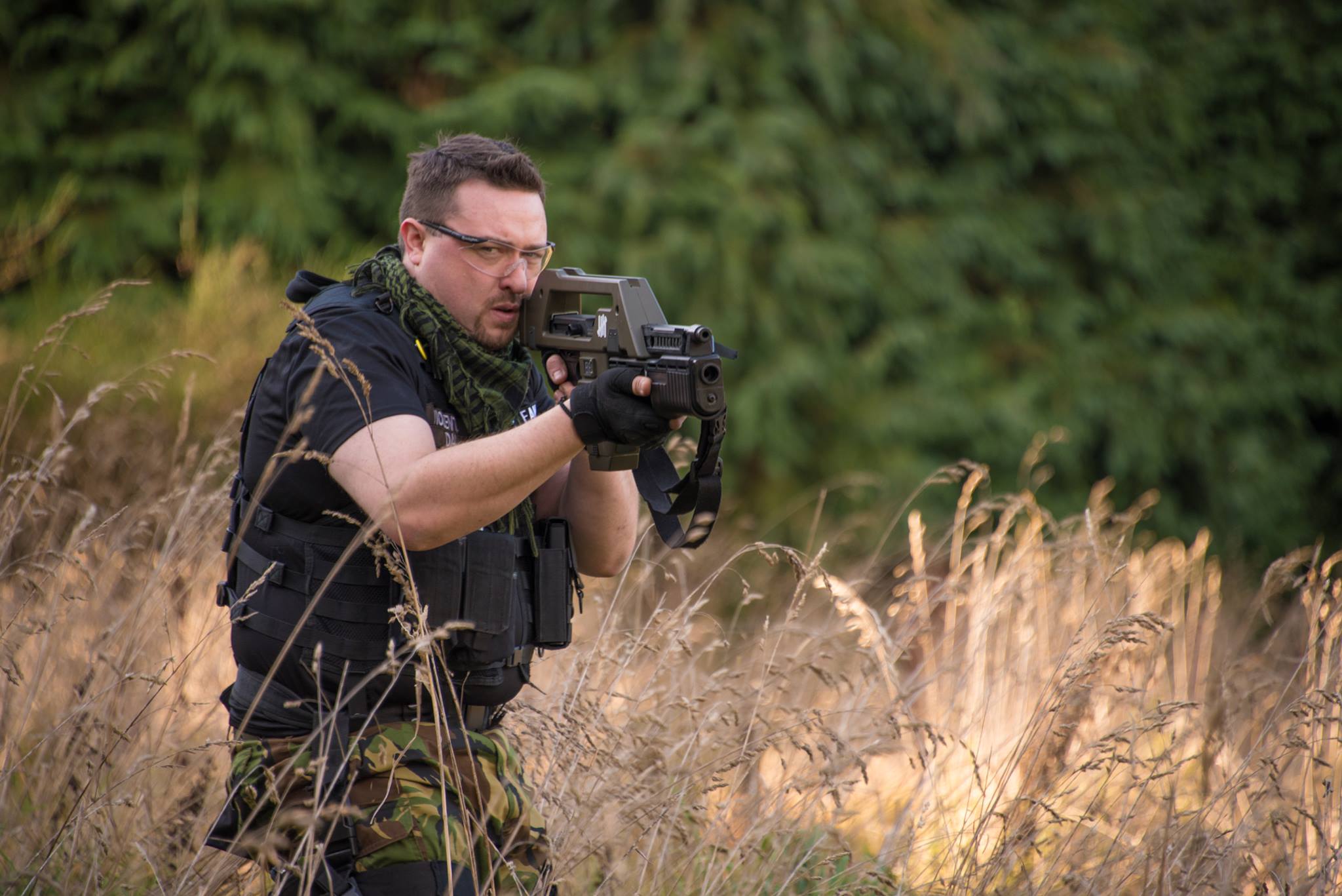 A: Not at all! While the majority of airsoft players skirmish in a wargame scenario, many people own airsoft guns just for target shooting and plinking in the backyard! Plus, because for the most part real world guns are used in the movie industry as the base for making Sci-Fi movie prop guns, airsoft allws you to make "firing" replicas of your favorite Sci-Fi weapons. More on this below...