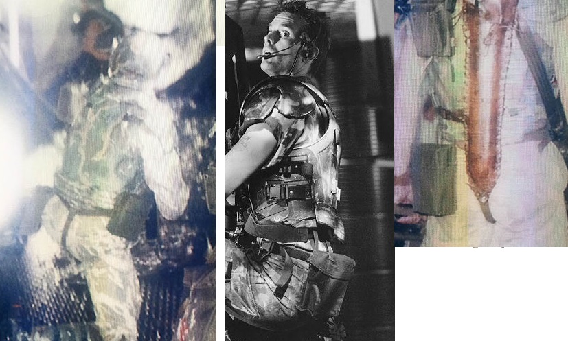 -PouchesWith the exception of the smart gunners, who do not wear them at all, The "standard" layout for pouches is one "small pouch" on the right hip, and one "large pouch" on the left buttocks. The variations occur when there is more gear added, like Hudson's hack pouch and Dietrich's medic bag which leads to them being scooted to other spots of the belt. Hicks is the only exception. He only has the one large pouch (2nd pic of Hicks is actually Remar as Hicks, but Hicks' single pouch is visible several time in film).
