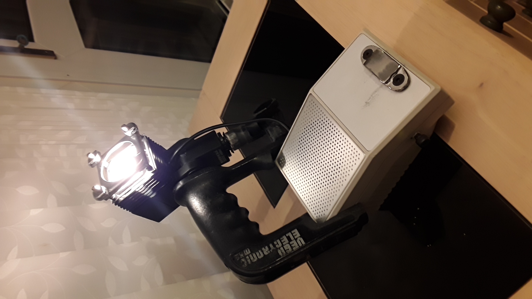 After another busy day i can finally say (other than forgetting to paint the alarm box screws) I've finished my shoulder lamp!