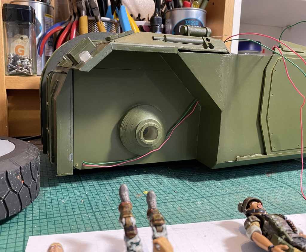 There we go. The exterior of the APC is all different shades of Olive Drab at the moment. I can't get a regular paint to match what's in the rattle can. It'll get a final overspray from that but I only have one can left, so that'll be one of the last jobs.