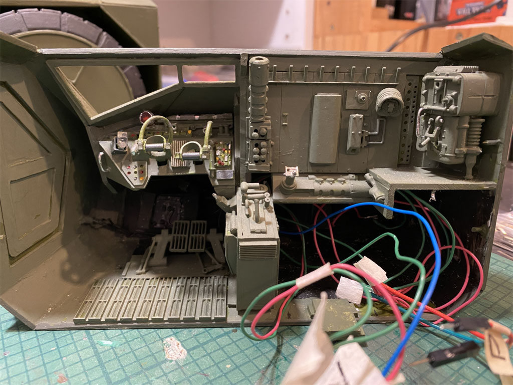 I’ve since added small zip ties to the wiring loom in strategic places, leaving me access to the batteries and any other items I need to be able to remove, then added blobs of hot glue where I didn’t need / want wires to move around. Pics of that and more next time!