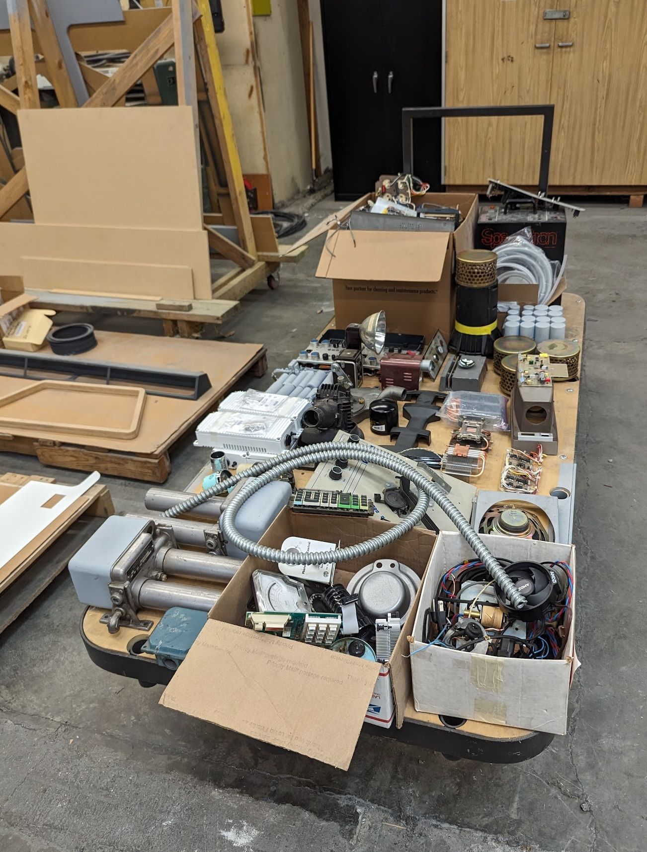 As mentioned, this is all still focused on the larger detail. We had a big pile of junk we'd been collecting for months that we were hoping to use to greeble out the space once the big shapes were all in there.